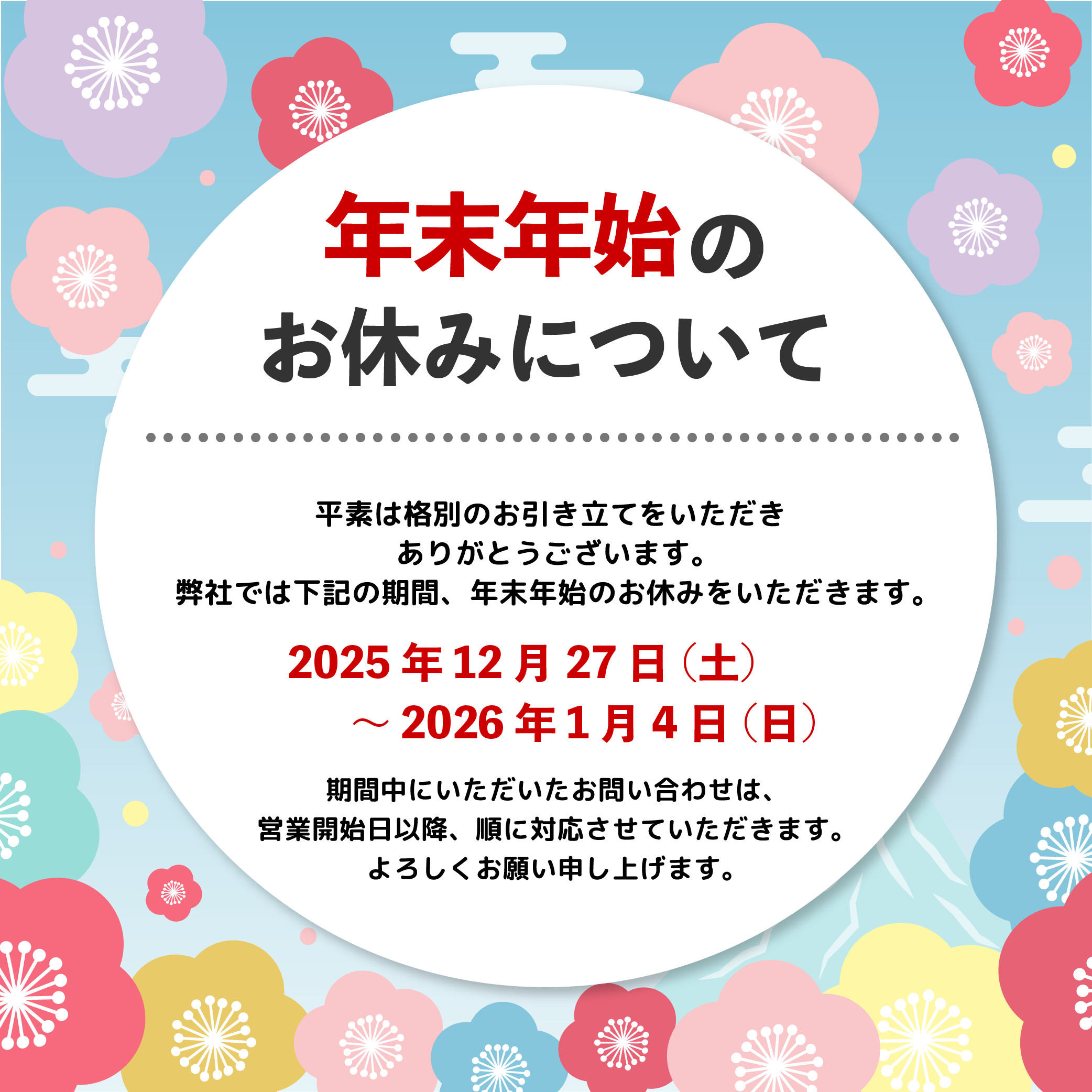 さて、弊社では下記の期間、年末年始のお休みをいただきます。