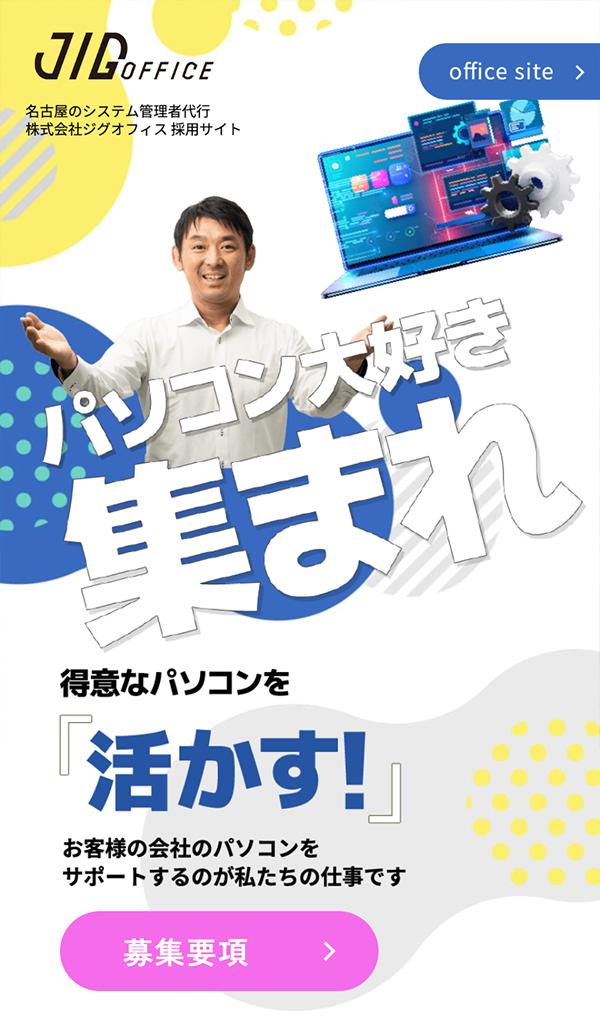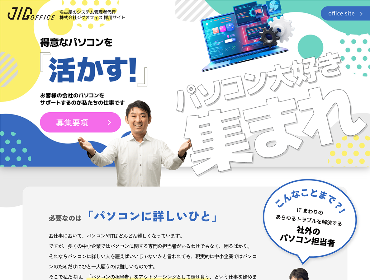 企業のIT担当として寄り添う姿勢や、御用聞きとして役に立ちたいという考え方が自然に伝わる採用ページとなるよう、全体の見せ方を設計しました。